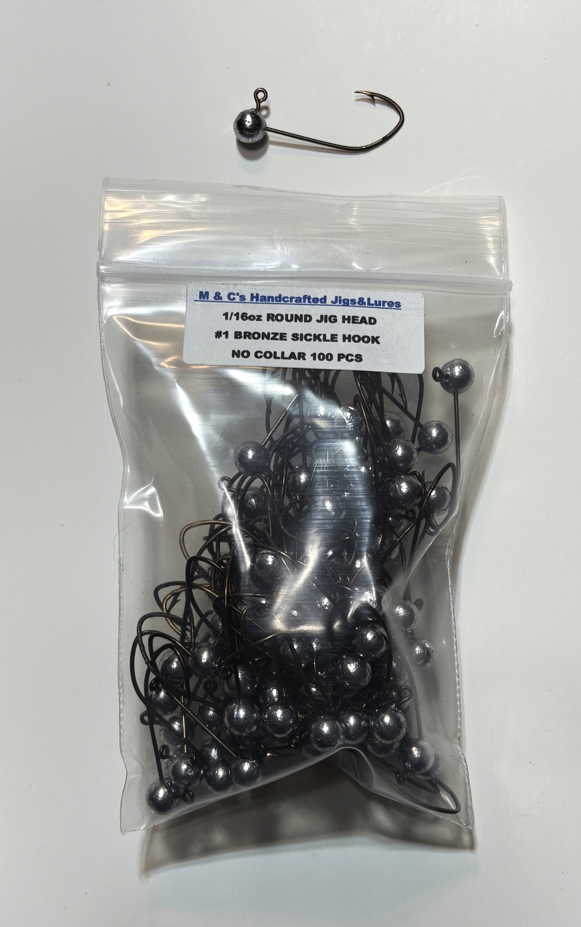 1/16oz Roundhead jig no collar and #1 bronze sickle hook 100 pcs
